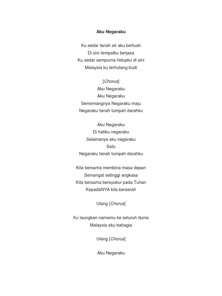 You also get free access to Scribd. Aku Negaraku Aku Negaraku Sememangnya Negaraku maju Negaraku tanah tumpah darahku.